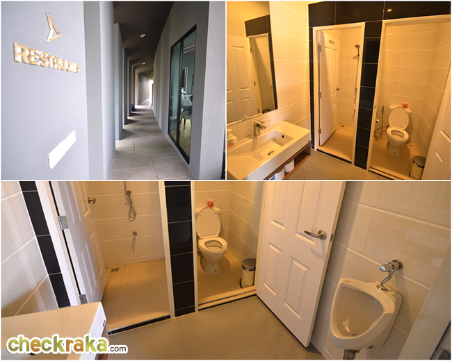 ออกมาดูห้องน้ำของชั้นนี้ ขึ้นบันไดมาจะเจออยู่ตรงกลางชั้น สามารถเปิดเข้า-ออกได้จากโถงด้านนอก