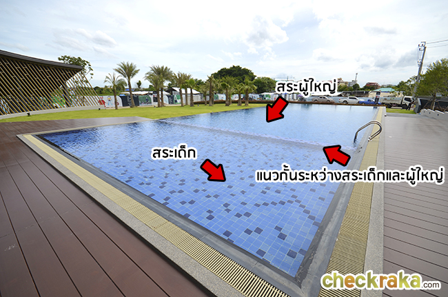 แต่จะแบ่งโดยใช้แนวกั้นแทน ซึ่งดีมากค่ะผู้ใหญ่จะได้ไม่ต้องกังวลว่าลูกหลานจะไหลผลัดไปในเขตน้ำลึก