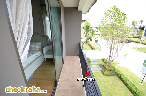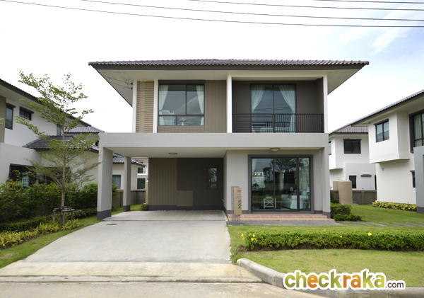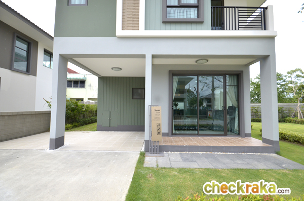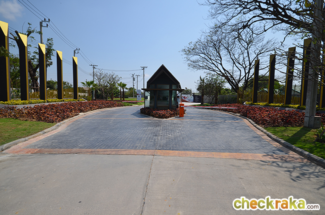 - สภาพแวดล้อม - เนื่องด้วยถนนกิ่งแก้วตรงด้านหน้าโครงการแม้จะเป็นถนนที่กว้างพอสมควร (วิ่งสวนกัน 2 ด้าน โดยแต่ละด้านมี 4 เลน รวมกันทั้งถนนกิ่งแก้วจึงเป็น 8 เลนและมีเกาะกั้นกลาง) แต่ก็เป็นถนนที่ยังไม่มีจุดสนใจอะไรมากนัก ในหลายๆ พื้นที่บนถนนนี้ยังเป็นโกดัง และโรงงานอยู่บ้าง และด้านหน้าโครงการก็ไม่มีร้านรวง ตลาด หรือร้านสะดวกซื้อที่จะพึ่งพาได้มากนัก ดังนั้น ต้องยอมรับว่าสภาพแวดล้อมหน้าโครงการอาจดูแห้งแล้งไปบ้าง แต่มองในอีกมุมหนึ่ง ก็ถือได้ว่าเป็นข้อดี เพราะหน้าโครงการรถไม่ค่อยติด โล่ง และไม่ค่อยวุ่นวายมากนัก และในอนาคตถนนนี้ก็อาจมีโอกาสที่จะพัฒนาขึ้นมาได้อีกอย่างแน่นอน ส่วนคำถามที่ว่าโครงการนี้อยู่ใกล้สนามบินสุวรรณภูมิ จะมีเสียงเครื่องบินรบกวนหรือไม่นั้น เนื่องจากโครงสร้างของบ้านในโครงการนี้ทั้งหมดเป็นการสร้างโดยใช้ระบบ Precast (คอนกรีตเสริมเหล็กสำเร็จรูป) จึงสามารถลดเสียงรบกวนภายในบ้านได้ดีพอสมควร ทางทีมงานใช้เวลาอยู่ในโครงการหลายชั่วโมงพบว่าได้ยินเสียงขึ้น-ลงของเครื่องบินอยู่บ้าง แต่ไม่ถี่มาก หากอยู่บริเวณนอกบ้านจะได้ยินเสียงพอสมควร แต่หากอยู่ภายในตัวบ้านแล้วปิดกระจก ก็แทบจะไม่ได้ยินเสียงเครื่องบินเลยค่ะ