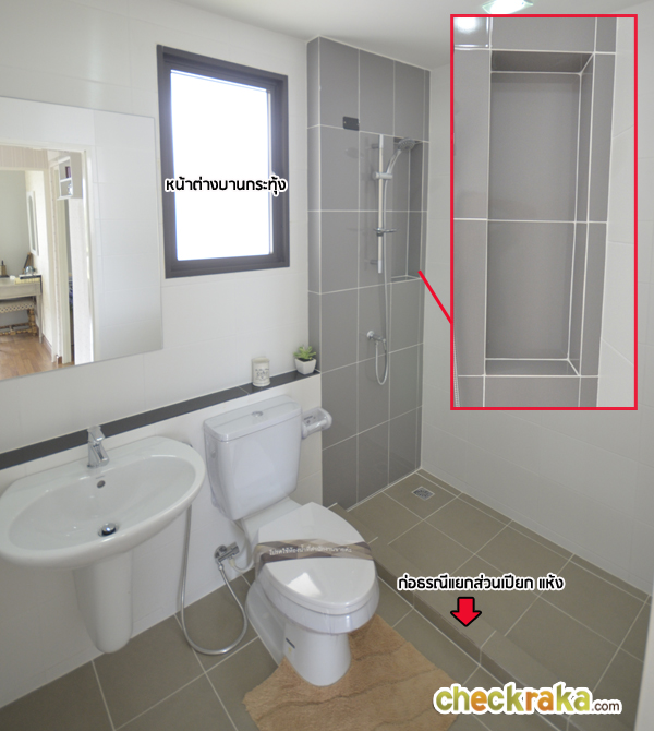 และยังก่อพื้นแยกส่วนให้ พร้อมเจาะช่องวางอุปกรณ์อาบน้ำมาให้