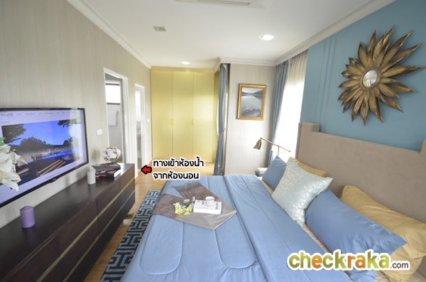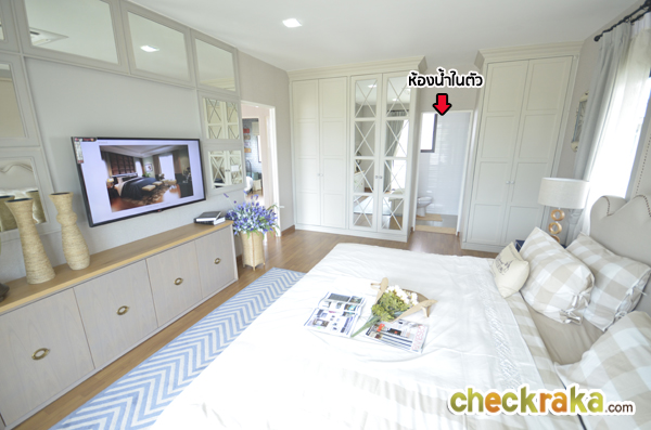 ถัดจากห้องน้ำเรามาดู Master Bedroom กันค่ะ ห้องนี้เป็นห้องนอนที่มีขนาดใหญ่สุดในบ้าน พื้นที่จากปลายเตียง