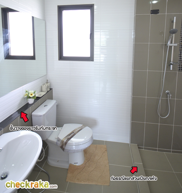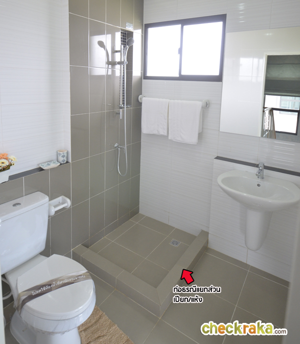 ถัดจากห้องนอน 3 คือห้องน้ำชั้นบน สุขภัณฑ์ที่ให้เหมือนชั้นล่าง แต่ห้องนี้มีส่วนอาบน้ำมาให้พร้อมฝักบัว