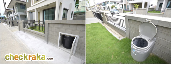 ให้ทิ้งด้านในบ้านได้เลยไม่ต้องเดินมาทิ้งนอกบ้าน ส่วนคนเก็บขยะก็สามารถเปิดประตูจากช่องกำแพงด้านนอก