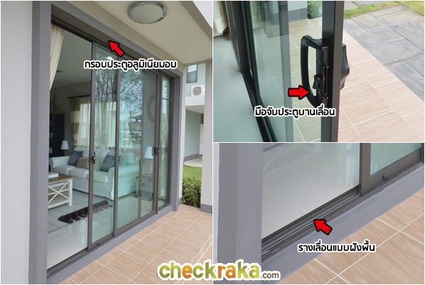 กระจกเขียวตัดแสง กรอบประตูเป็นอลูมิเนียม สามารถเลื่อนออกไปชมวิว รับลมที่ระเบียงได้ค่ะ