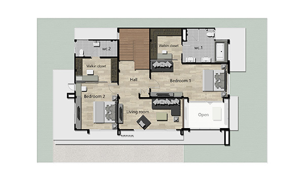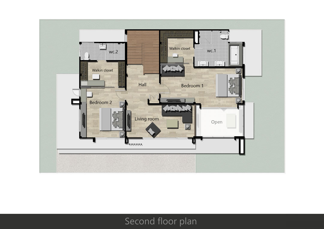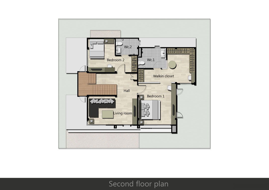 ฟังก์ชั่นห้องต่างๆ ของบ้านชั้น 2 ค่ะ ภาพนี้เป็นบ้านตัวอย่างแบบแต่งแล้วนะคะ