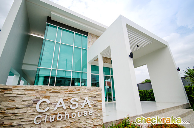 ผ่านทางเข้า-ออกเข้ามา ด้านซ้ายมือจะเจอกับคลับเฮ้าส์ 2 ชั้น ที่มีทั้งสระว่ายน้ำ ห้องรับรอง และห้องฟิตเนส ที่จอดรถด้านหน้าทางเข้าคลับเฮ้าส์ ช่วงบริเวณนี้ปลูกดอกไม้และปูหญ้าที่ทางเดินไว้ซะสวยเชียวค่ะ