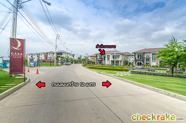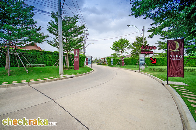 ฝั่งขวาด้านหน้าสำนักงานขาย มีน้ำพุประติมากรรมตัว C แทนสัญลักษณ์ คาซ่า เลเจ้นด์ ตั้งอยู่ค่ะ พอเดินตามถนนตรงไป ผ่านสำนักงานขายเข้ามาด้านในช่วงกลางโครงการ