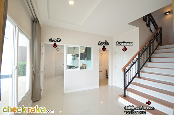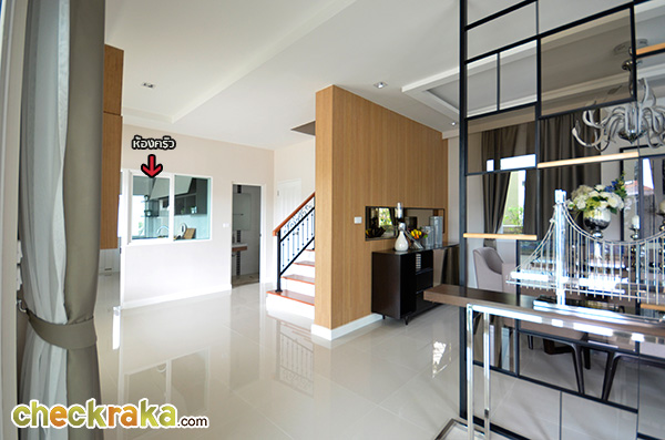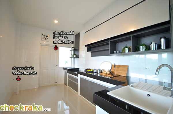 ประตูจากโรงรถเปิดเข้ามากลางบ้านสามารถเดินไปเก็บของใช้ที่ครัว