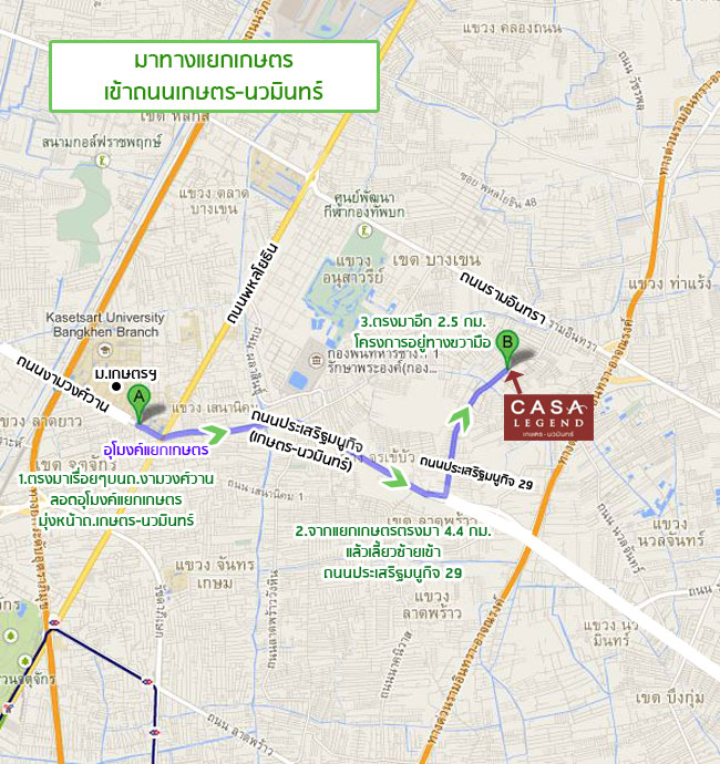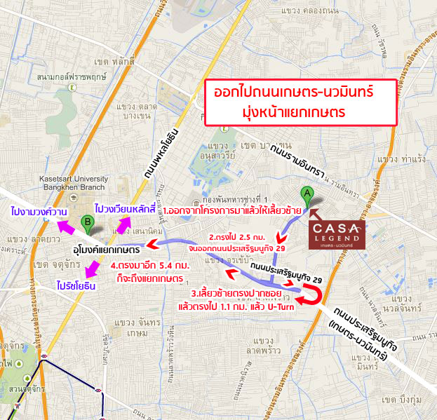 พอตรงมาอีก 100 เมตร ก็จะถึงโครงการ Casa Legend เกษตร-นวมินทร์ ค่ะ โครงการอยู่ทางซ้ายมือ