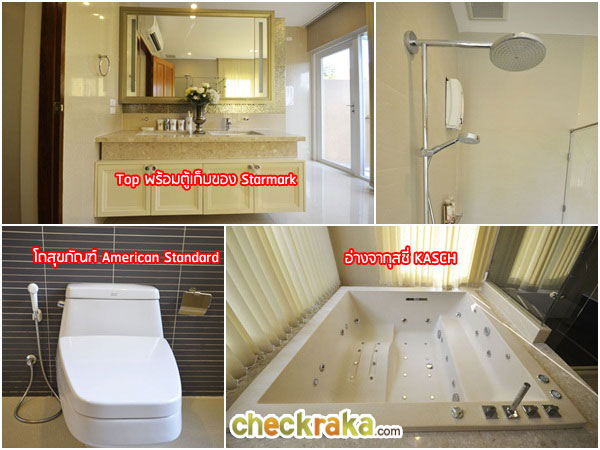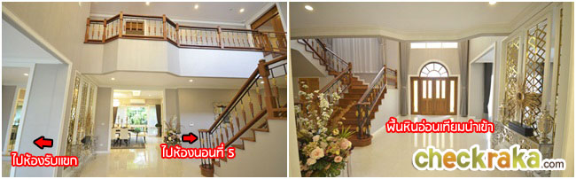 - รูปแบบบ้านและวัสดุ - บ้านในโครงการนี้ มีให้เลือกทั้งแบบตกแต่งหมดทั้งหลัง และแบบบ้านเปล่า ซึ่งราคาก็จะแตกต่างกันไปค่ะ สำหรับวัสดุ หรือ Specification ที่จะให้มากับตัวบ้านนั้น โดยรวมถือว่าวัสดุต่างๆเหมาะกับแบรนด์บ้านหรูหราระดับนี้ค่ะ ไม่ว่าจะเป็นวัสดุในหลายๆ ส่วนที่ให้ เช่น ไม้สัก ไม้มะค่า ซึ่งเป็นไม้จริงราคาสูง พื้นหินอ่อนเทียมนำเข้า และวัสดุประตูหน้าต่าง เป็นต้น