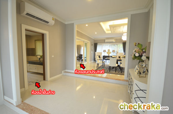 ถัดจากส่วนรับประทานอาหารฝั่งซ้ายจะเป็นห้องอเนกประสงค์ สำหรับรับแขก นั่งเล่น จัดปาร์ตี้