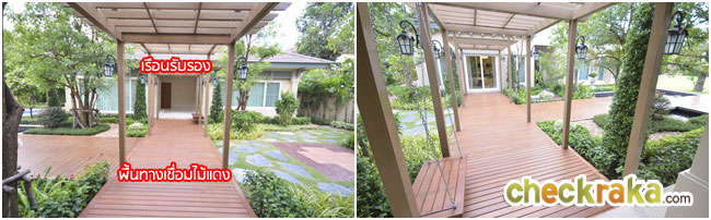 พื้นที่ทางเชื่อมไปเรือนรับรอง ภาพซ้ายถ่ายจากตัวบ้านใหญ่ ภาพขวาถ่ายจากเรือนรับรอง