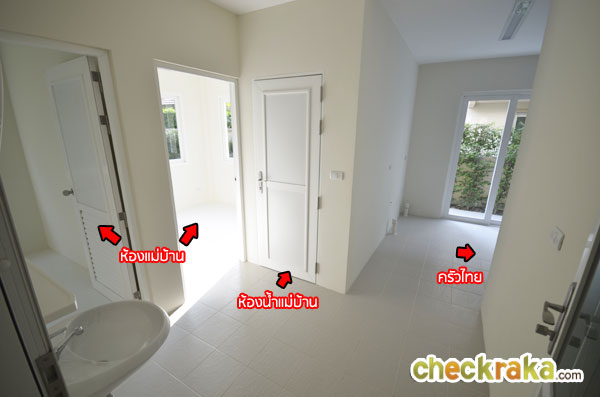 ประตูที่เห็นสามารถเปิดออกไปห้องแม่บ้าน และครัวไทยได้
