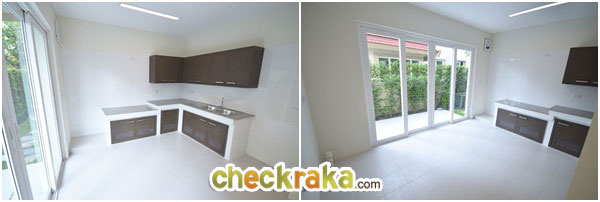 ห้องครัวไทย จะก่อเค้าน์เตอร์พร้อม Top และตู้เก็บของให้ตามรูปนี้เลยค่ะ ส่วนประตูบานเลื่อนสามารถเปิด