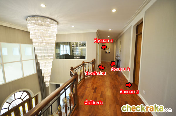 ออกจากห้อง Master Bedroom จะเจอกับโถงทางเดินของชั้นบน ยาวไปจนถึงห้องนอนที่ 4