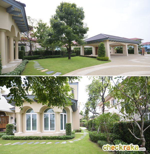 - ตัวโครงการโดยรวมและส่วนกลาง - ทางเข้าโครงการอยู่ติดหน้าถนน แยกพื้นที่ส่วน Guest Area และ Residential Area อย่างชัดเจน ทำให้ผู้อยู่อาศัยมีความเป็นส่วนตัวมากขึ้น พื้นที่โดยรอบเป็นที่อยู่อาศัยแนวราบเช่นเดียวกัน ทำให้มีความสงบ พื้นที่โครงการประมาณ 229 ไร่ โดยมีบ้านทั้งหมดประมาณ 206 หลัง อีกทั้งยังแบ่งโซนบ้านเป็น 2 โซน บรรยากาศโดยรวมจึงไม่อึดอัด ยิ่งส่วนกลางที่มีสวนสาธารณะกระจายรอบถึง 4 จุด สนามเทนนิส 2 คอร์ท พร้อม Club House สุดหรู และสระว่ายน้ำขนาดใหญ่ ที่มีทั้งฟิตเนสและซาวน่าให้ด้วย ทำให้โครงการมีสิ่งอำนวยความสะดวกรองรับได้อย่างครบครัน ค่าส่วนกลางเก็บอยู่ที่ 22 บาท/ตร.ว. ถือว่าไม่แพงมากสำหรับโครงการระดับนี้ แต่ถ้าใครอยากว่ายน้ำหรือเล่นฟิตเนสก็จ่ายเงินเพิ่มเป็นครั้งๆไป