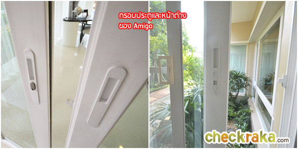 กรอบหน้าต่างเป็น UPVC ของ Amigo กระจกเขียวตัดแสง พร้อมมุ้งลวดมีมาให้ด้วยค่ะ