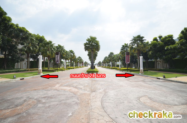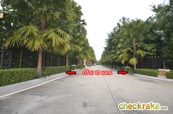 ผ่านประตูเข้ามาเจอกับวงเวียนหลัก ถนนจากวงเวียนเข้าไปส่วนที่พักอาศัยกว้าง 18 เมตร และ 16 เมตร