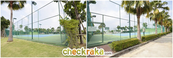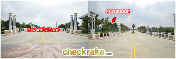 ตรงมาเรื่อยๆจะเจอกับสะพานข้ามคลอง พอลงจากสะพานจะเห็นสนามเทนนิสอยู่ฝั่งซ้ายมือ