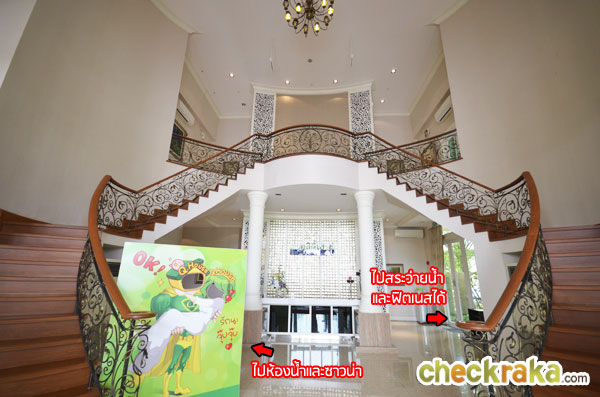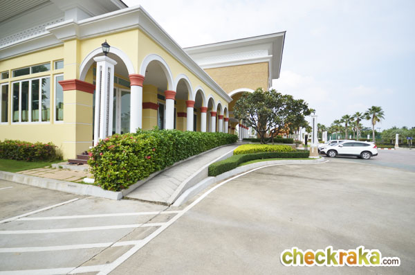 ผ่านสนามเทนนิสจะเห็นป้ายตามรูป Club House ขนาดใหญ่ตั้งเด่นอยู่ฝั่งขวามือ