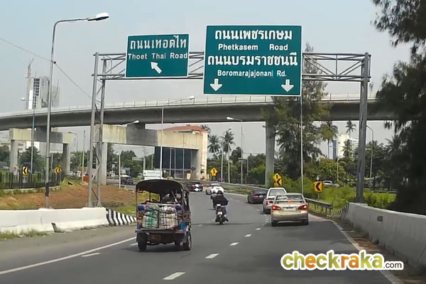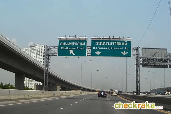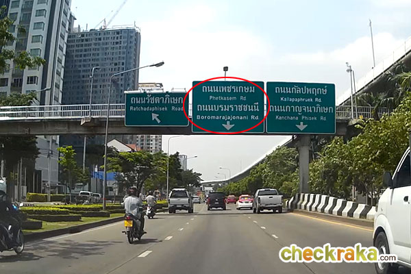 ลงจากสะพานก็จะเจอป้ายบอกทางไปถนนบรมราชชนนีอีกครั้ง ขับชิดฝั่งขวาไว้ วิ่งตามป้ายไปค่ะ