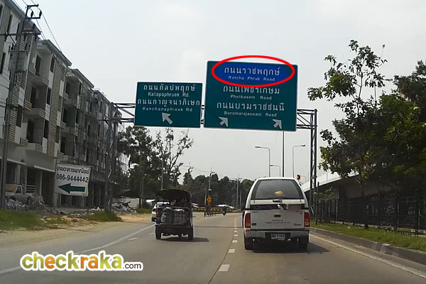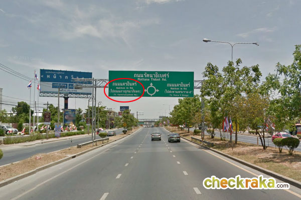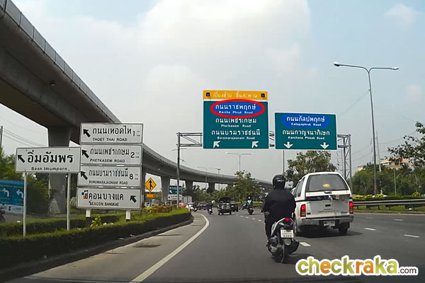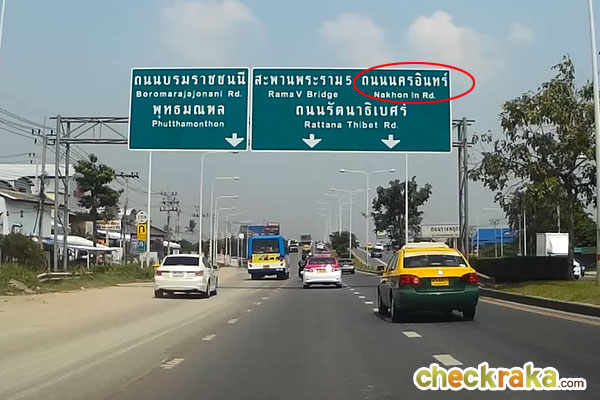 ลงสะพานเข้าสู่ถนนราชพฤกษ์แล้วค่ะ จากจุดนี้ให้ขับตามป้ายถนนนครอินทร์ไปเรื่อยๆ