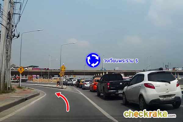พอใกล้ถึงวงเวียนพระราม 5 จะมีป้ายบอกให้เบี่ยงออกทางซ้ายมือ