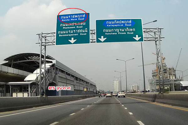 ขับตรงมาอีกจะผ่าน BTS สถานีตลาดพลู และสถานีวุฒากาศ ตรงจุดนี้จะเริ่มมีป้ายบอกทางไปถนนราชพฤกษ์แล้ว