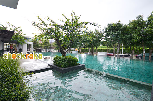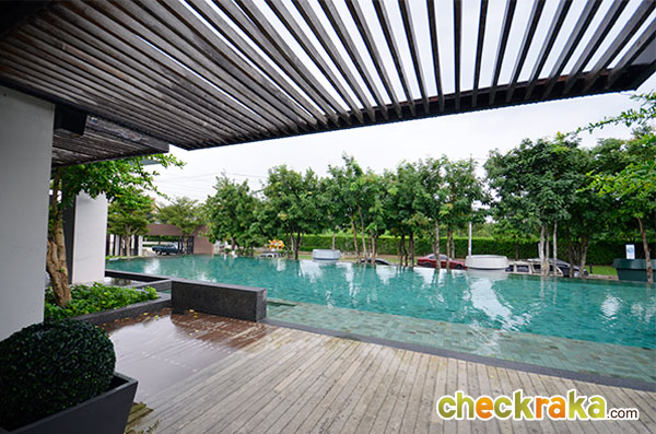 คลับเฮ้าส์พร้อมที่นั่งรับรอง และสระว่ายน้ำขนาดใหญ่ที่ด้านหน้าโครงการ
