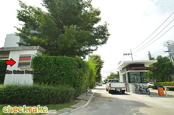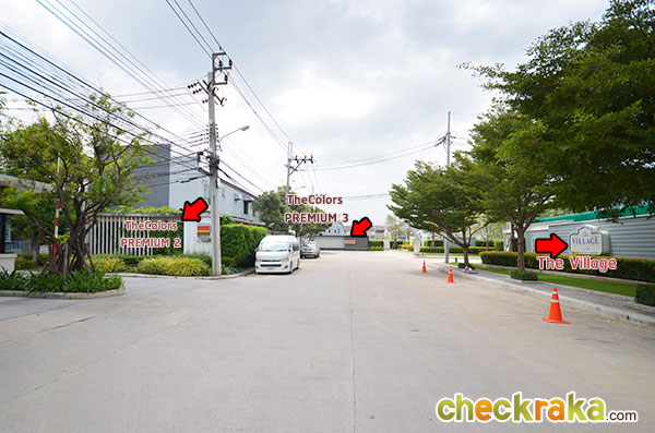 ต้องผ่านป้อมรปภ. ก่อน ค่ะ ป้ายหน้าโครงการบอกให้ทราบว่าภายในมีโครงการบ้าน TheColors และ The Village ที่เราจะพาไปเยี่ยมชมค่ะ