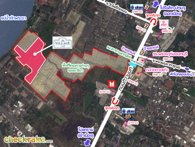 โครงการ The Village แจ้งวัฒนะ-ติวานนท์ เป็นหนึ่งในโครงการบ้านที่ตั้งอยู่บนที่ดินแปลงใหญ่กว่า 100 ไร่ของทาง อารียา โดยโครงการนี้เป็นโครงการลำดับสุดท้ายที่สร้างขึ้นบนที่ดินแปลงนี้ หลังจากที่ประสบความสำเร็จกับการขายโครงการทาวน์โฮม TheColors ตัวก่อนหน้าหมดไปแล้วถึง 4 เฟสด้วยกัน ด้วยความที่เป็นโครงการเบอร์สุดท้ายที่สร้างบนที่ดินด้านในสุดของแปลงเลยทำให้ตัวโครงการ The Village มีระยะห่างจากถนนใหญ่หน้าโครงการอยู่ที่ 700 เมตร และมีจุดเด่นที่เพื่อนๆ โครงการ TheColors ที่ขายหมดไปก่อนหน้าอีก 4 โครงการไม่มีกันนั่นก็คือ ส่วนของที่ดินที่ตั้งติดกับแม่น้ำเจ้าพระยาค่ะ