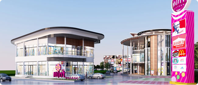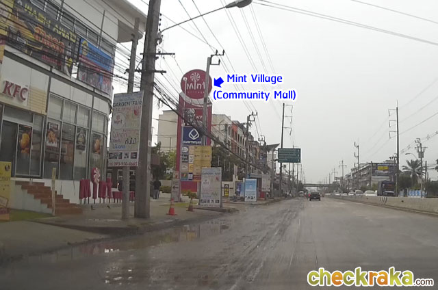 เดี๋ยวเราลองกลับรถมานะคะ จะเห็น Mint Village (Community Mall) อยู่ทางซ้ายมือ (ห่างจากโครงการประมาณ 400 ม.)