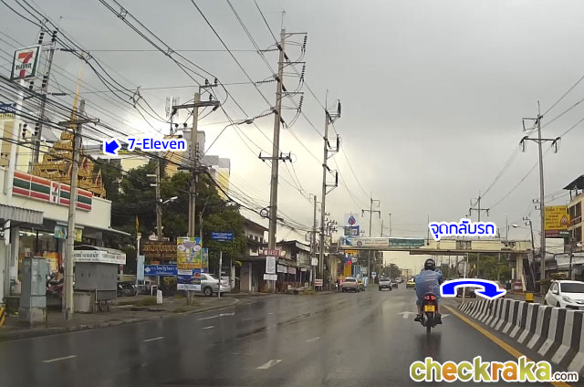 ตรงมาอีกนิดก็จะถึงจุดกลับรถ มี 7-Eleven อยู่ทางซ้ายมือ (ห่างจากโครงการประมาณ 400 ม.)