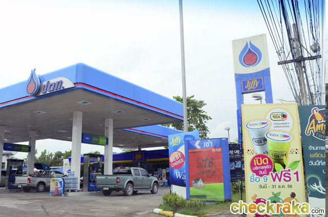 ตรงไปอีกเรื่อยๆ อีกนิดก็จะเจอกับปั๊มน้ำมันปตท.ซึ่งตรงนี้ก็จะมีร้านสะดวกซื้อ Jiffy และร้านกาแฟ Amazon อยู่ด้วยค่ะ