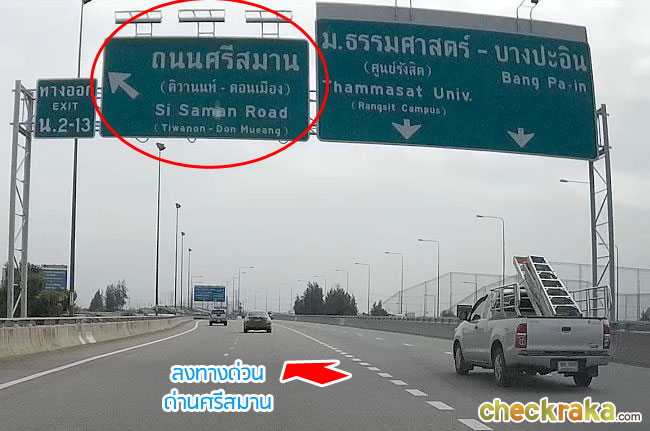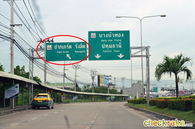 เบี่ยงซ้ายไปตามป้ายปากเกร็ดรังสิต
