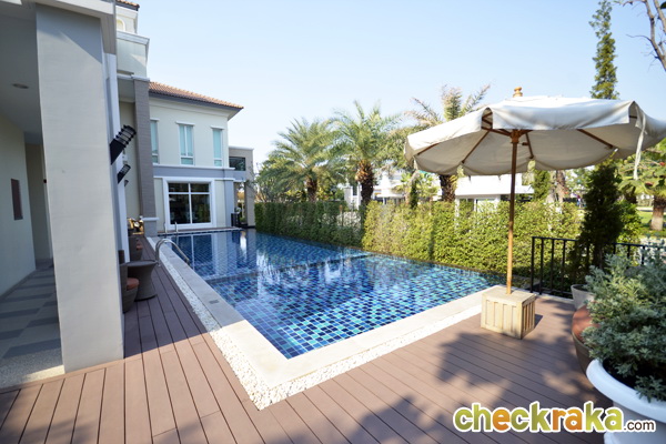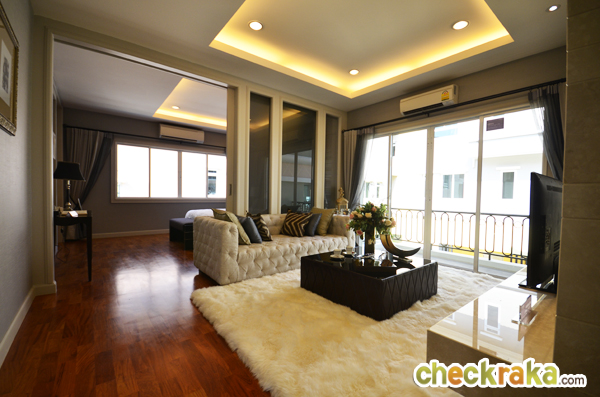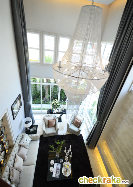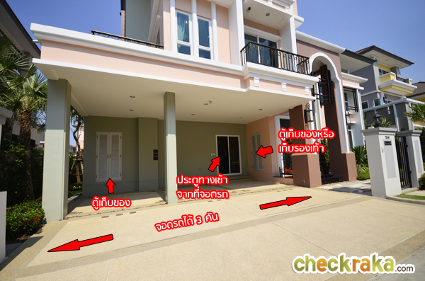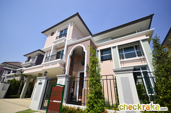สำหรับแบบบ้านที่ทางทีมงาน Checkraka.com ได้มีโอกาสเข้าเยี่ยมชมและเก็บภาพมาฝากกันในคราวนี้คือแบบบ้าน Grand Villa Contenta ซึ่งเป็นบ้าน Modern Tuccany Style โดยบ้าน TYPE นี้มีฟังก์ชัน 5 ห้องนอน 6 ห้องน้ำ 4 ห้องพักผ่อน 1 มุมอเนกประสงค์ 1 มุมทานอาหาร 1 มุม Pantry 1 ห้องแม่บ้าน พร้อมห้องน้ำในตัว และที่จอด 3 คัน โดยบ้านที่เราได้มีโอกาสเข้าเยี่ยมชมเป็นบ้านตัวอย่างที่ตกแต่งบิ้วท์อินพร้อมทั้งหลัง และมีขนาดที่ดิน 95 ตร.ว. ขนาดพื้นที่ใช้สอย 487 ตร.ม. ส่วนระบบการก่อสร้างบ้านของโครงการนี้ใช้ระบบ Conventional ก่ออิฐฉาบปูน โดยเลือกใช้วัสดุประหยัดพลังงานที่ช่วยทำให้บ้านเย็นขึ้น แต่มีความคงทนแข็งแรงอย่างอิฐมวลเบา พร้อมทาสีสะท้อนความร้อน Bager Cool UV Shield