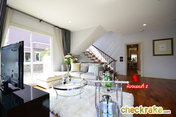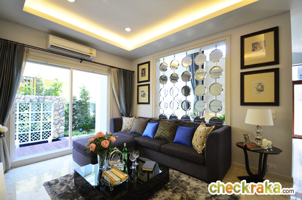 จุดเด่นของบ้านที่นี่คือ Double Living Room ซึ่งห้องส่วนนี้จะอยู่ติดกันเลยนะคะ ทางโครงการจะกั้นกำแพง