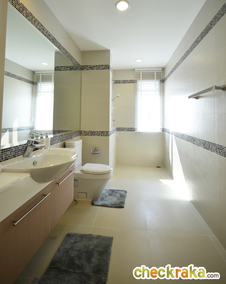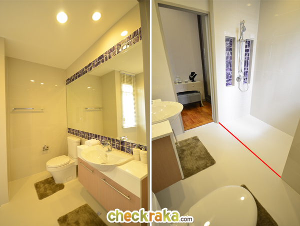 ต่ำกว่าพื้นปกติเล็กน้อย สามารถทำฉากกั้นอาบน้ำเพิ่มเองเพื่อแยกส่วนเปียก/แห้งได้ชัดเจนขึ้นค่ะ
