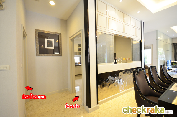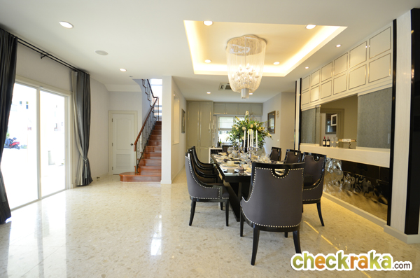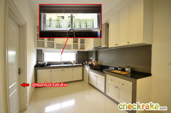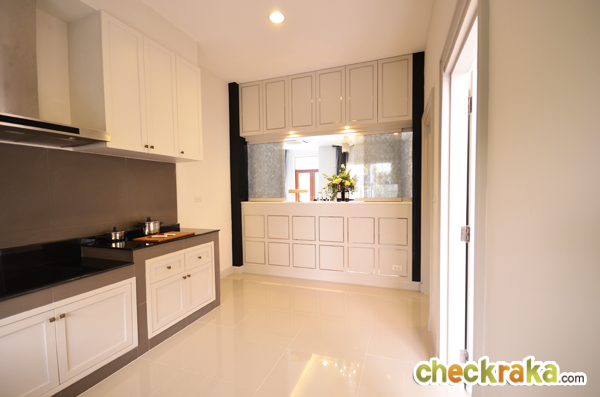 บ้านตัวอย่างจะเจาะกำแพง Built in บานเลื่อนระหว่างห้องครัวและโต๊ะอาหารมาให้ สำหรับส่งอาหาร