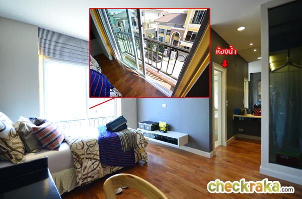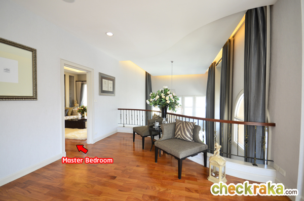 ถัดมาเป็นห้อง Master Bedroom ห้องนี้บ้านที่ขายจริงจะเป็นห้องเปล่าโล่งๆ แต่บ้านตัวอย่างจะกั้นให้เห็นว่า