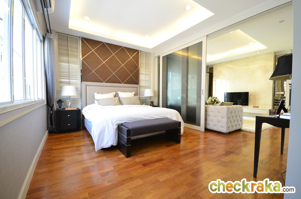 และพื้นในห้องนอนทั้งหมดเป็นพื้นปาร์เก้ ไม้มะค่าแบบพรีเมียม