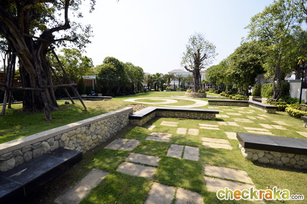 มีที่นั่งพักผ่อนหย่อนใจ และล้อมรอบไปด้วยต้นไม้
