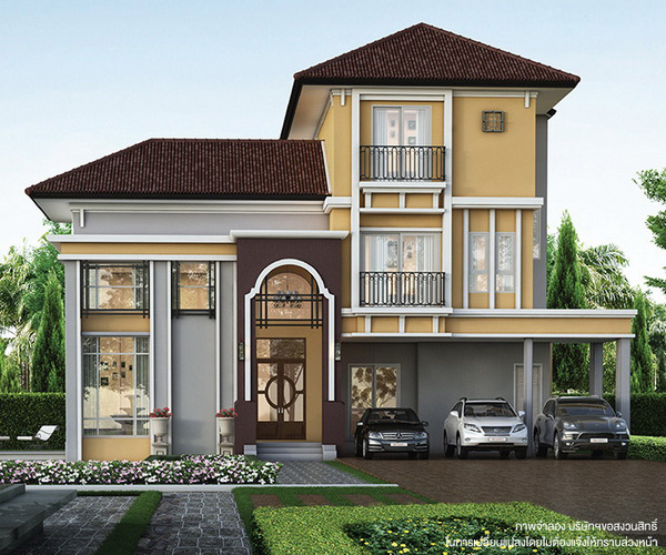สถาปัตยกรรมสไตล์อิตาลีได้อย่างเด่นชัด ทางขึ้นมีบันได 3 Step พื้นที่ชานพักหน้าประตูสามารถวางตู้รองเท้าได้เลยค่ะ