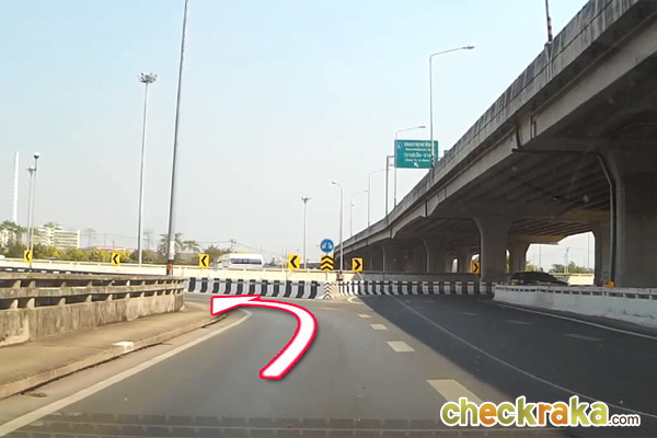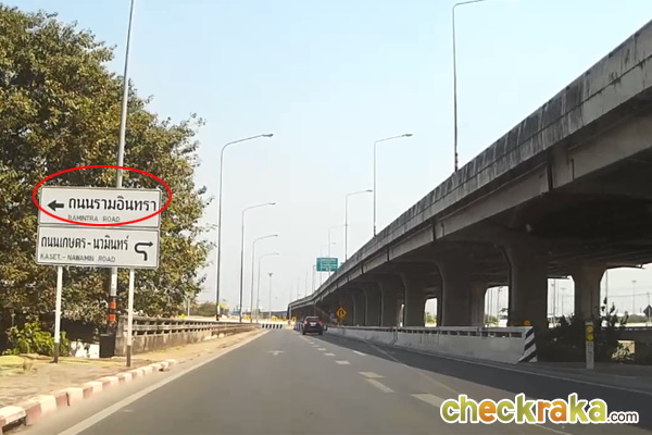 มาเรื่อยๆ จนถึงทางแยก ที่มีถนนยกระดับ ให้ชิดซ้ายเลี้ยวเข้าถนนตัดใหม่ รัชดา-รามอินทรา