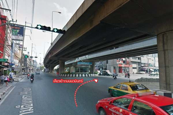 ไปเรื่อยๆ จนถึง รามอินทรา กม.8 ให้เลี้ยวขวาเข้าถนนนวมินทร์
