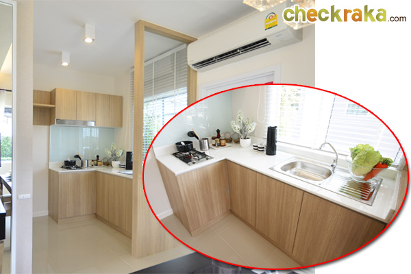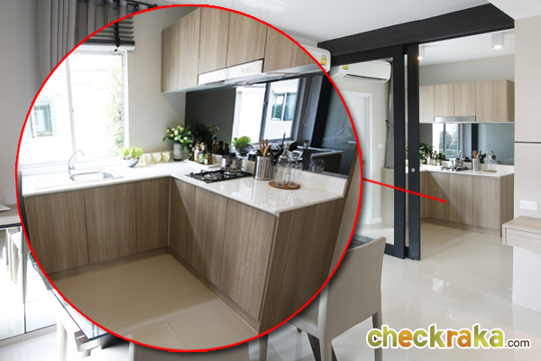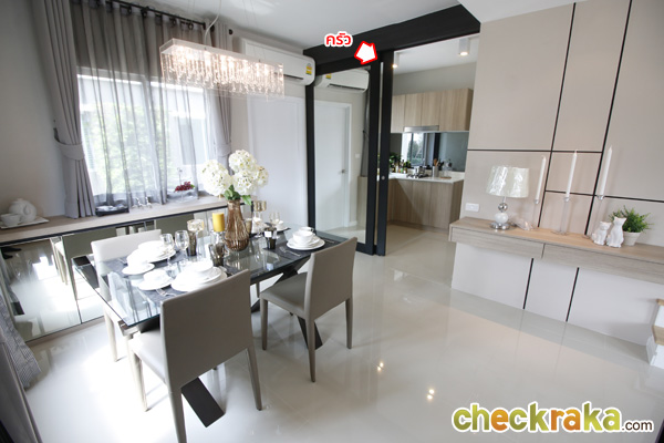 บ้านตัวอย่างทำประตูบานเลื่อนกั้นห้องครัวไว้