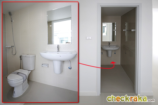 เปรียบเทียบกับบ้านส่งมอบ ห้องน้ำก็อยู่ที่เดียวกับบ้านแบบแรกค่ะ