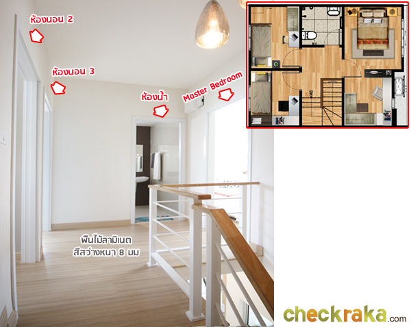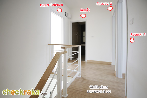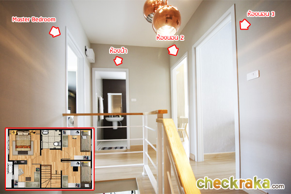 ขึ้นมาชั้นบน ด้านซ้ายเป็น Master Bedroom ด้านขวาเป็นห้องนอน 2 ห้อง