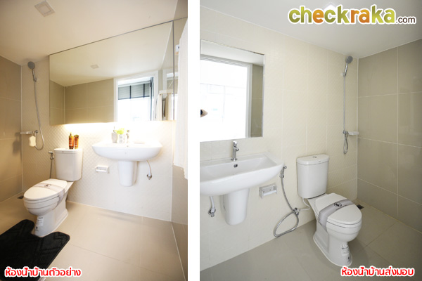เปรียบเทียบห้องน้ำบ้านตัวอย่างกับบ้านส่งมอบ ได้เหมือนกันเลยค่ะ