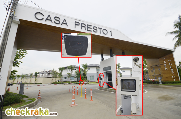 ที่ซุ้มประตูมี รปภ. ไม้กั้นกระดก CCTV บริเวณที่สแกนคีย์การ์ดเข้า-ออกโครงการ